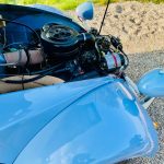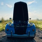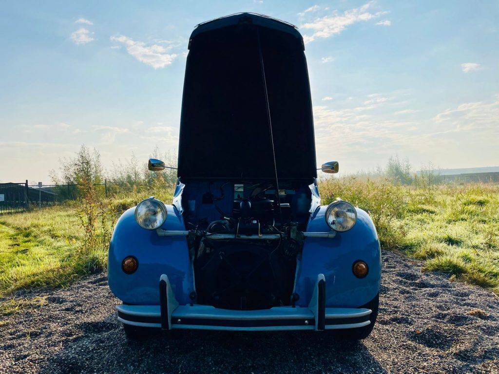 In 2016 kochten we dit originele eendje, een erg goede basis met een prachtige carrosserie. Het chassis, voetenbak en de vloerplaten waren niet zo best meer en werden vervangen. Nog voor het eendje helemaal klaar was vond deze alweer een nieuwe enthousiaste eigenaar hier in de buurt. Deze hebben er vanaf 2016 vele reizen mee gemaakt achter de camper veelal naar Frankijk. De laatste tijd werd het gebruik steeds minder en daarom is deze weer terug in onze voorraad.