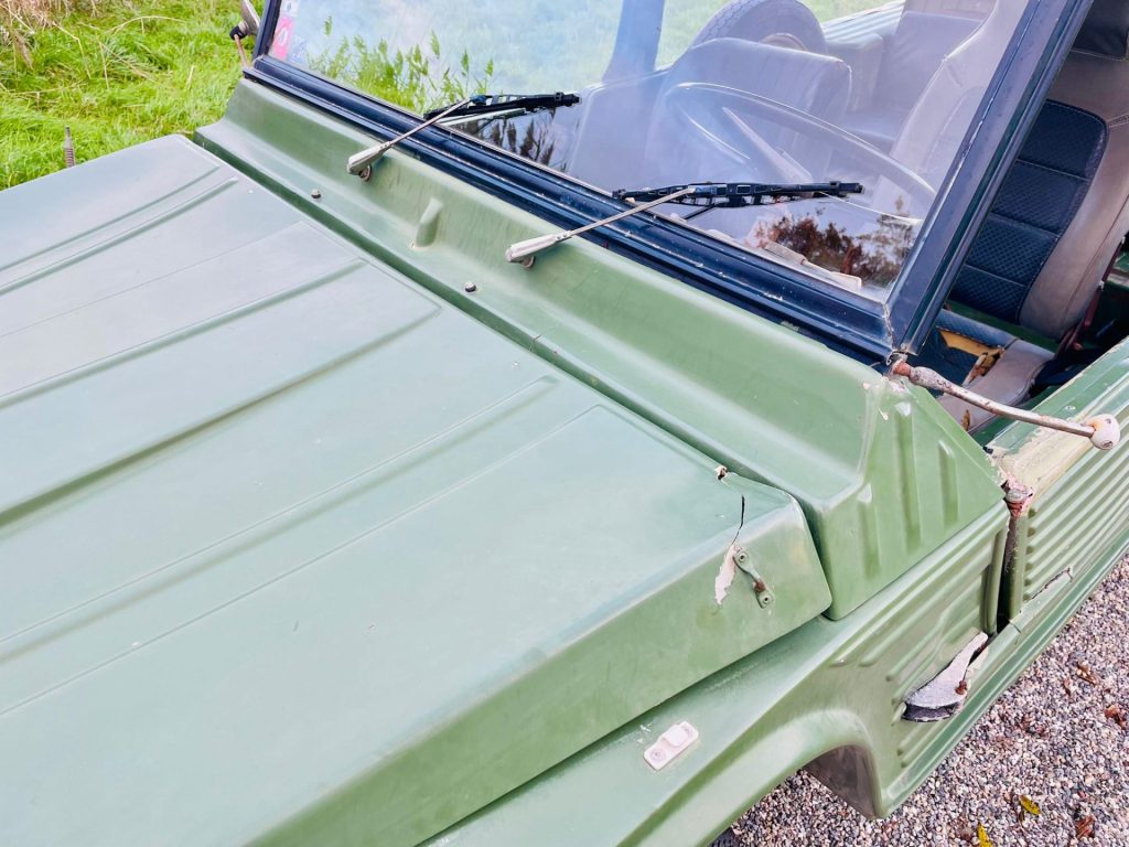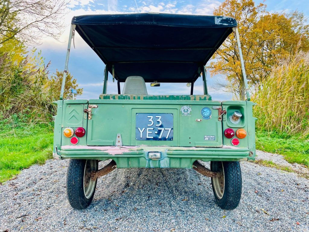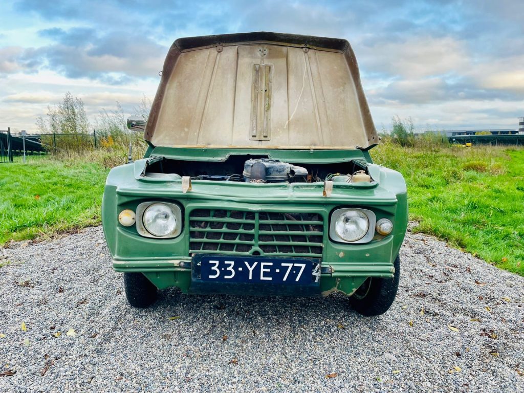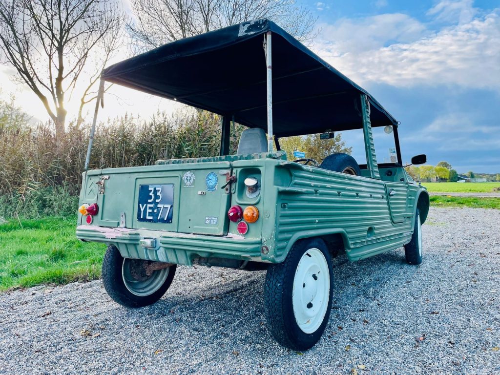 Een bevriende garage in Spanje vond hem onlangs in Frankijk waarna wij hem weer meenamen naar Nederland. Het chassis en subframe zijn prima, de motor en versnellingsbak functioneren naar behoren. De remmen verdienen aandacht en we adviseren een goede onderhoudsbeurt. Reeds geïmporteerd in NL en voorzien van personen kenteken. Leuke Mehari om naar je eigen wensen/eisen klaar te maken. Geen zin/tijd om dit zelf te doen?  Uiteraard kunnen wij dit ook voor u doen tegen meerprijs.