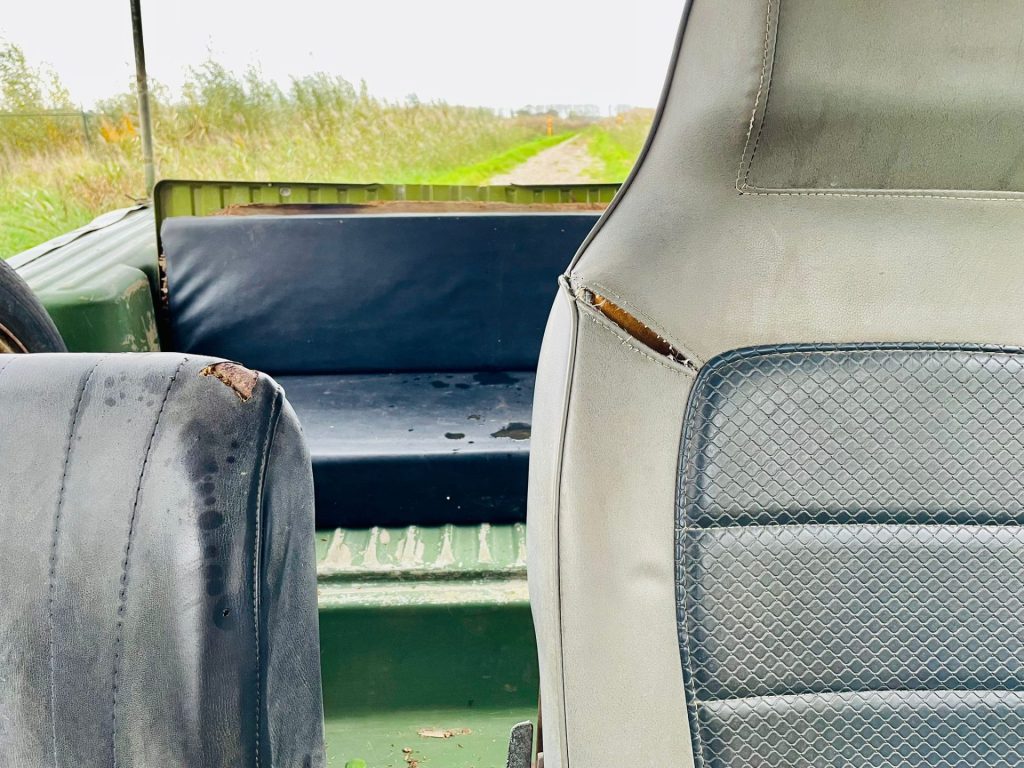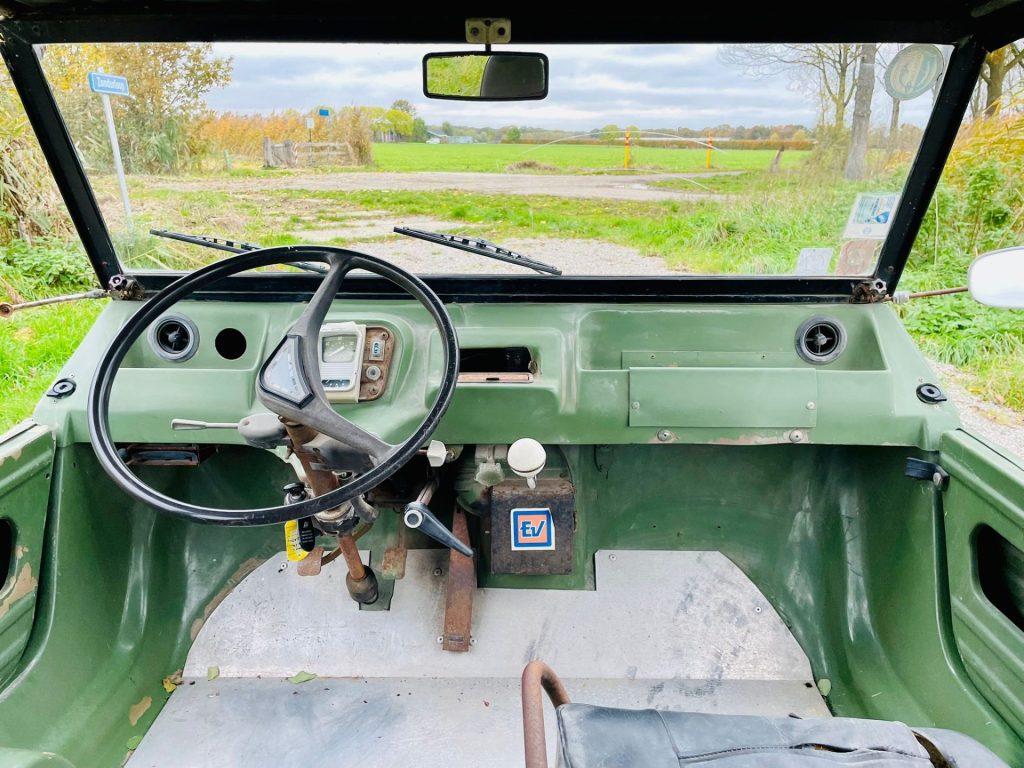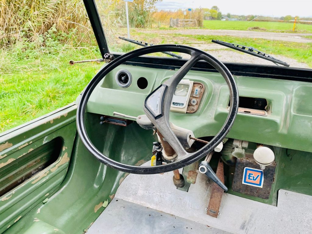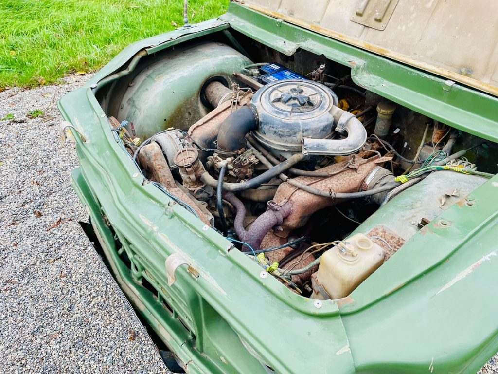Een bevriende garage in Spanje vond hem onlangs in Frankijk waarna wij hem weer meenamen naar Nederland. Het chassis en subframe zijn prima, de motor en versnellingsbak functioneren naar behoren. De remmen verdienen aandacht en we adviseren een goede onderhoudsbeurt. Reeds geïmporteerd in NL en voorzien van personen kenteken. Leuke Mehari om naar je eigen wensen/eisen klaar te maken. Geen zin/tijd om dit zelf te doen?  Uiteraard kunnen wij dit ook voor u doen tegen meerprijs.