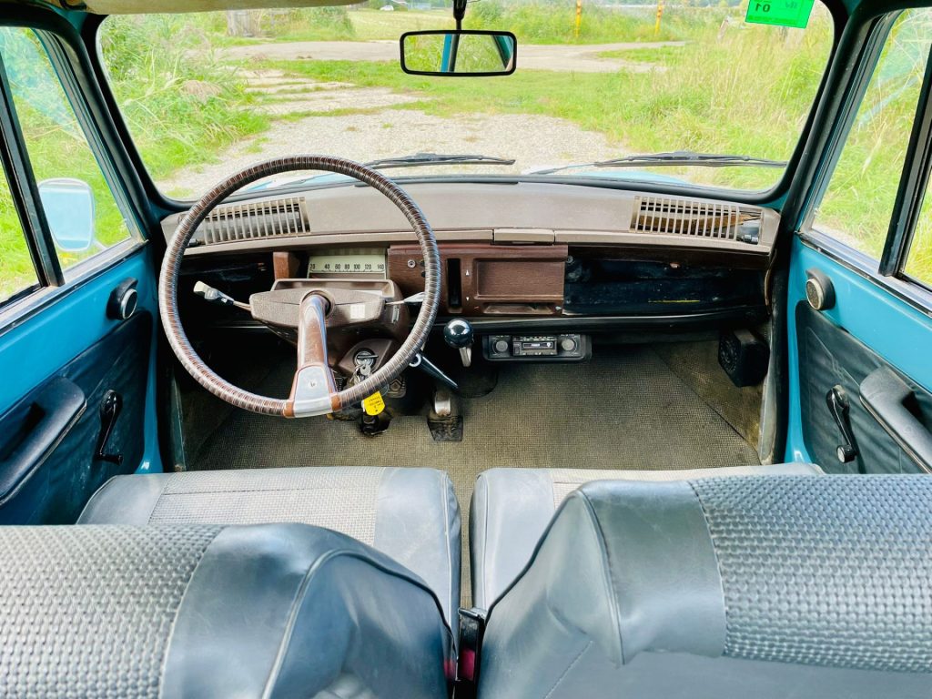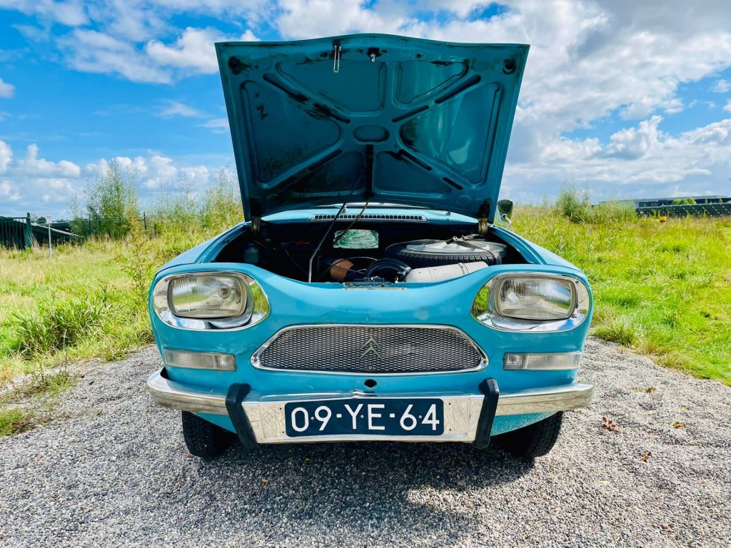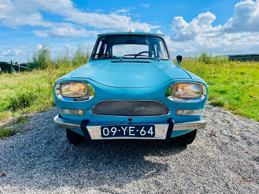 Deze leuke vintage Ami 8 berline vonden we onlangs in Spanje bij de 1e eigenaar en konden we niet laten staan. De carrosserie heeft een prachtig vintage uiterlijk met rondom wat kleine gebruikssporen en de onderzijde is puntgaaf. Het Spaanse klimaat heeft hem duidelijk goed gedaan. Het interieur is nog origineel en ziet er netjes uit.