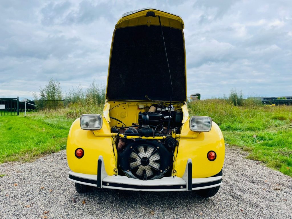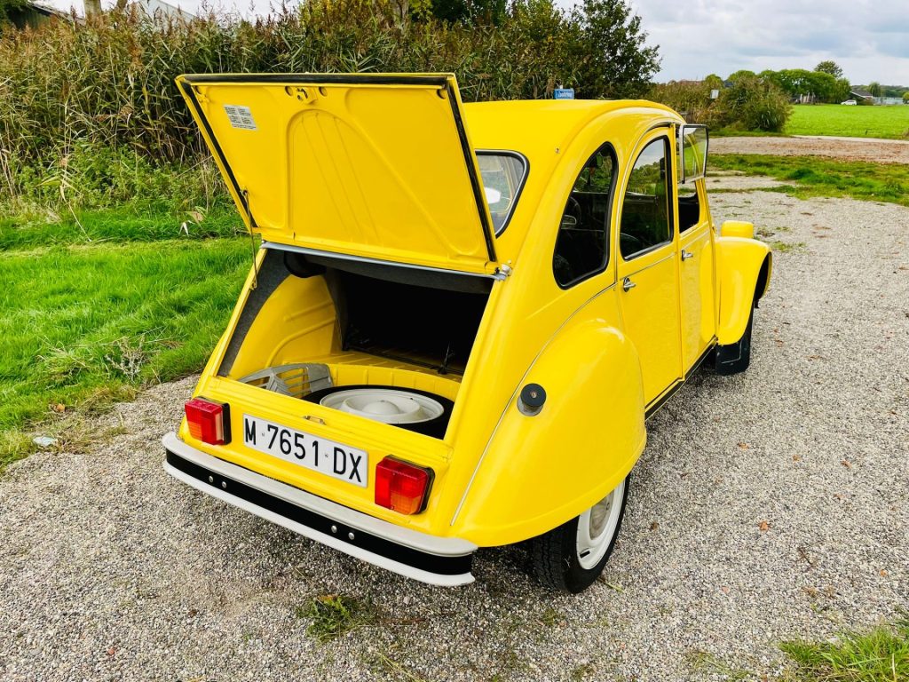 Deze 2cv6 CT in de geweldige frisse kleur Jaune mimosa vonden we onlangs in de buurt van Malaga en haalden we naar Nederland. Het Spaanse klimaat heeft hem erg goed gedaan, de onderzijde verkeerd nog in uitstekende originele staat. De carrosserie is in het verleden eens opnieuw gespoten en ziet er algemeen netjes uit.