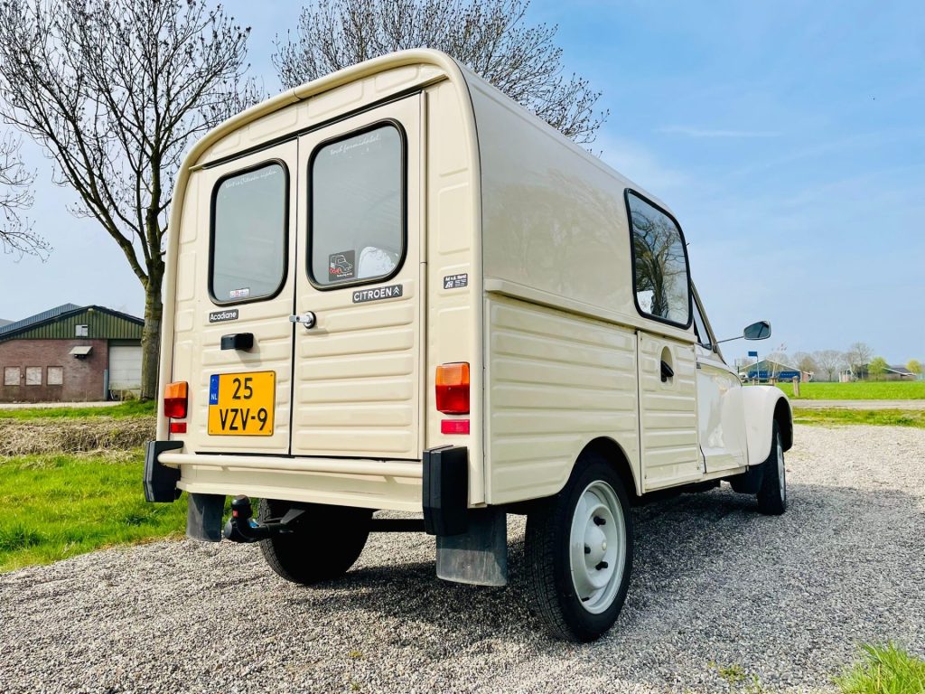 Begin 2009 is deze Acadiane naar Nederland gekomen. Hij kwam terecht bij een liefhebber welke hem alleen hobbymatig heeft gebruikt voor de kleine boodschapjes, braderieën, en Citroën beurzen in de buurt. Van het verleden weten we helaas niet zo veel, gezien de strakke laadruimte en het nette originele interieur kunnen we wel concluderen dat het in ieder geval geen echt werkpaard is geweest. Wat jaren terug is deze al eens opnieuw in de lak gezet, en ziet er nog steeds netjes uit. De techniek voelt goed aan, en ook de onderzijde verkeerd in prima staat.