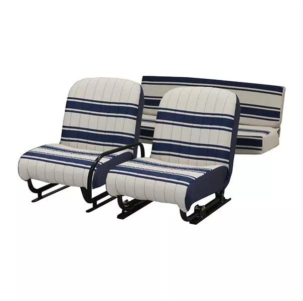 Set van 3 Méhari-stoelen (rechterstoel kan worden neergeklapt) – wit/blauw